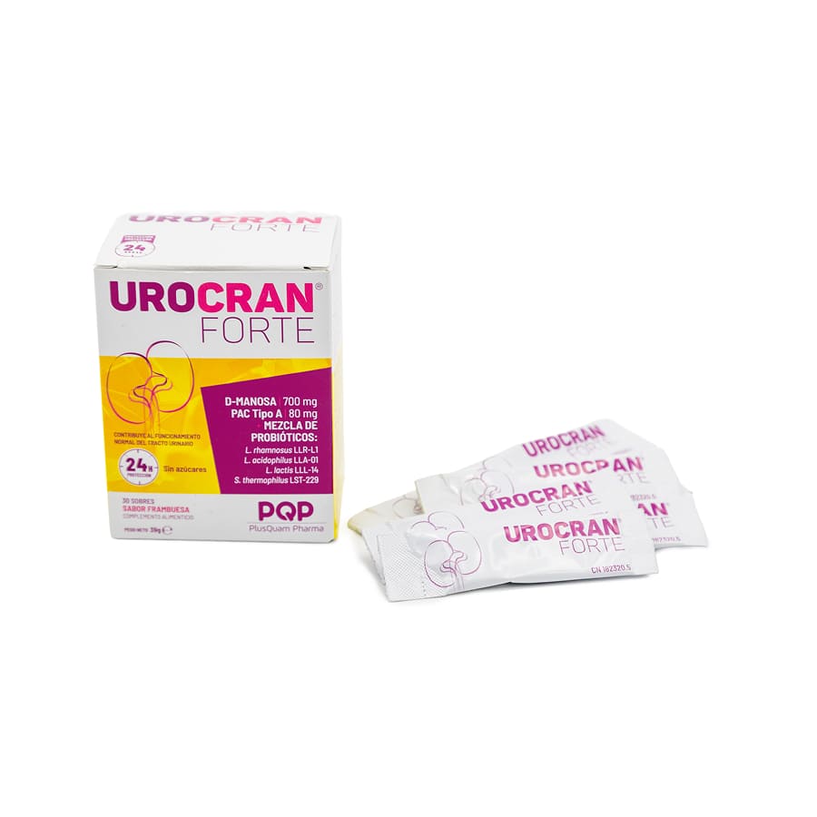 Urocran® Forte es un complemento alimenticio en formato sobres que actúa desde el primer mes para aliviar los síntomas de la cistitis, favorecer la expulsión de las bacterias y evitar recurrencias. Con D-Manosa, Extracto de Arándano rojo americano y Probióticos.